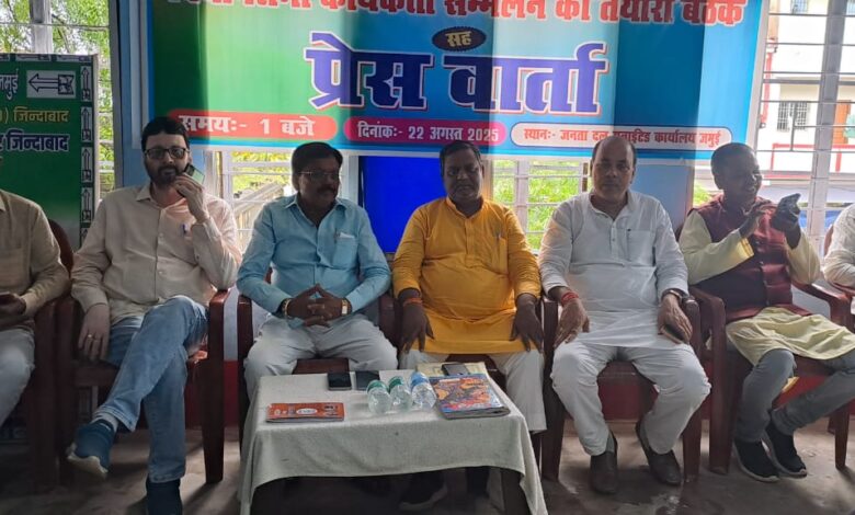जमुई – जदयू के प्रधान कार्यालय स्थित कर्पूरी सभागार में राष्ट्रीय जनतांत्रिक गठबंधन की विधानसभा कार्यकर्ता सम्मेलन की तैयारी को लेकर एक अहम बैठक सह प्रेस वार्ता आयोजित की गई। बैठक की अध्यक्षता जदयू जिलाध्यक्ष शैलेंद्र महतो ने की। बैठक में आगामी 25 अगस्त 2025 को प्रस्तावित एनडीए कार्यकर्ता सम्मेलन