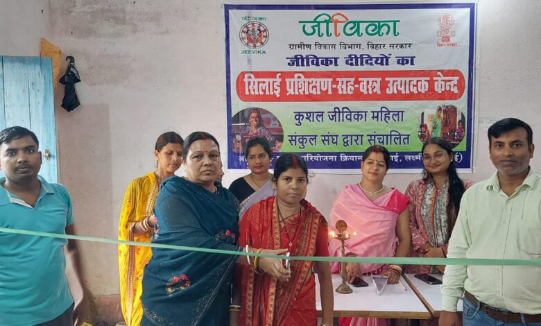 जमुई – जिले के 10 प्रखंड में बुधवार से जीविका दीदियों को सिलाई कार्य में निपुण बनाने के लिए सात दिवसीय गैर आवासीय प्रशिक्षण की शुरुआत कर दी गई है।सभी प्रखंडों के नोडल संकुल स्तरीय संघ में सिलाई प्रशिक्षण-सह-वस्त्र उत्पादन केंद्र का शुभारम्भ संकुल संघ की लीडर दीदियों के द्वारा दीप प्रज्वलित कर किया गया।