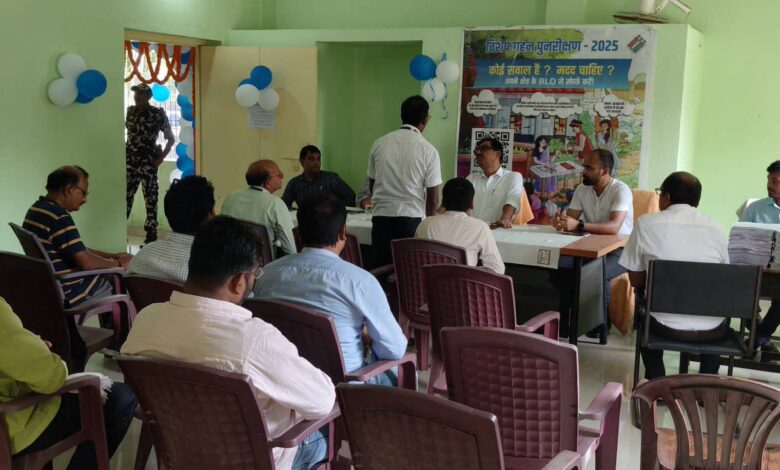 जमुई – विशेष गहन पुनरीक्षण 2025 के अंतर्गत 1 जुलाई 2025 की अर्हता तिथि के आधार पर शनिवार, 2 अगस्त 2025 को जमुई जिला मुख्यालय स्थित प्रखंड कार्यालय सदर जमुई एवं नगर परिषद जमुई में विशेष मतदाता शिविर का आयोजन किया गया। इस शिविर का उद्घाटन जिला निर्वाचन पदाधिकारी सह जिलाधिकारी श्री नवीन कुमार ने किया।