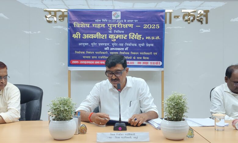 निर्वाचन पदाधिकारी महोदय ने आगामी बिहार विधानसभा आम चुनाव 2025 के सफल संचालन हेतु निर्वाचन आयोग का हैंड बुक में दिए गये निर्देशों का पालन करने के निर्देश दिये। स्वीप कोषांग के तहत दिव्यांग, वृद्ध, कम मतदान प्रतिशत वाले बूथों पर विशेषकर स्वीप कैलेंडर के तहत व्यापक जागरूकता अभियान चलाने का निर्देश दिया गया। साथ ही उन्होंने उप निर्वाचन पदाधिकारी को निर्देशित करते हुए कहा कि वैसे मतदान केंद्र जहां विधानसभा और लोकसभा चुनाव में मतदान प्रतिशत कम देखा गया है उसका मूल्यांकन कर वैसे मतदान केंद्र क्षेत्र में मत के प्रति मतदान प्रतिशत बढ़ाने का निदेश दिया। मौके पर अपर समाहर्ता श्री रविकांत सिंहा, जिला लोक शिकायत निवारण पदाधिकारी श्री राम दुलार राम, उप विकास आयुक्त श्री सुभाष चंद्र मंडल, उप निर्वाचन पदाधिकारी मोहम्मद नजरुल हक, जिला पंचायती राज पदाधिकारी सह गोपनीय प्रभारी श्री वीरेंद्र कुमार, स्थापना पदाधिकारी से नागमणि कुमार वर्मा, अनुमंडल लोक शिकायत निवारण पदाधिकारी, सभी कोषांग के वरीय नोडल पदाधिकारी, सभी कोषांग के नोडल पदाधिकारी समेत अन्य सम्बंधित उपस्थित थे।