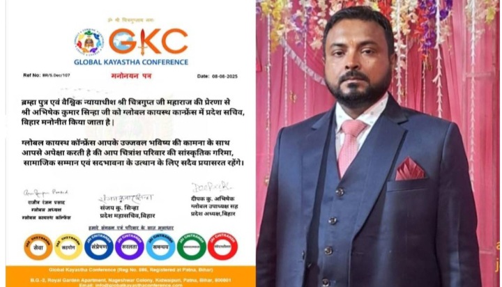 जमुई निवासी अभिषेक कुमार सिन्हा बने ग्लोबल कायस्थ कॉन्फ्रेंस के बिहार प्रदेश सचिव।