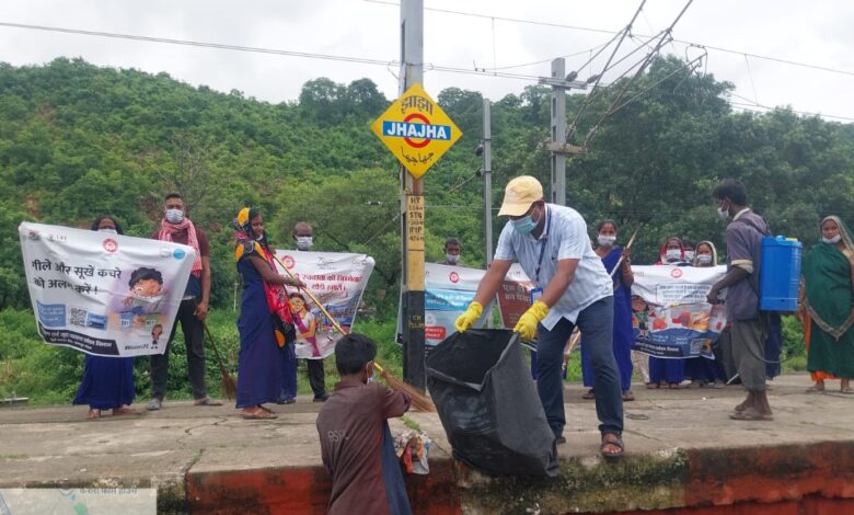 झाझा- आजादी का जश्न, स्वच्छता के संकल्प के साथ मनाने हेतु रेल मंत्रालय द्वारा सम्पूर्ण भारतीय रेल पर 01 से 15 अगस्त, 2025 तक स्वच्छता अभियान चलाये जाने का निर्णय लिया गया है। उसी आलोक में सोमवार को स्वास्थ्य निरीक्षक कार्यालय की ओर से रेलवे स्टेशन पर स्वच्छता अभियान चलाया गया। जिसमे सीएचआई गिरीश कुमार सिंह ने श्रमदान करते हुए स्टेशन, प्लेटफॉर्मों, सर्कुलेटिंग एरिया तथा रेलवे पटरियों के आस-पास साफ-सफाई तथा विशेष रूप से कचरों के निस्तारण पर विशेष अभियान चलाया।