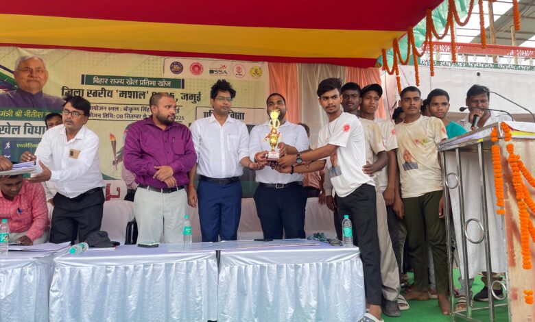 वहीं जिला पदाधिकारी महोदय जमुई ने युवाओं को संबोधित करते हुए कहा कि खेल मानसिक एवं शारीरिक स्वास्थ्य के लिए अति आवश्यक है एवं बिहार सरकार की अनेकों योजनाओं के तहत युवा खेल के लिए प्रशिक्षण ले रहे हैं तथा उन खिलाड़ियों को स्कूल टैग कर उन्हें अच्छी शिक्षा भी दी जा रही है।