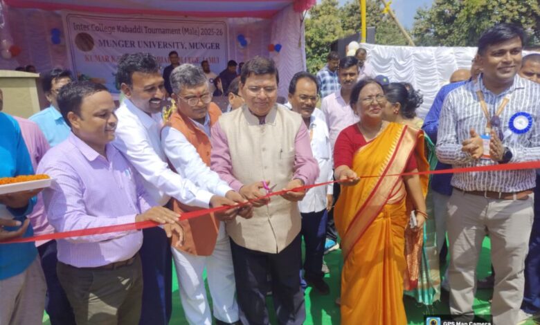 जमुई में इंटर कॉलेज कबड्डी प्रतियोगिता का भव्य शुभारंभ, 14 महाविद्यालयों की टीमों ने लिया हिस्सा, कुलपति ने किया उद्घाटन।
