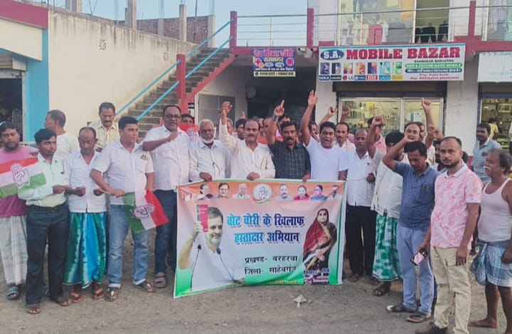 बरहरवा प्रखण्ड के रामनगर पंचायत में जिला अध्यक्ष सह विधायक प्रतिनिधि बरकत खान के नेतृत्व में कांग्रेस की ओर से “वोट चोरी रोकने” को लेकर एक हस्ताक्षर अभियान