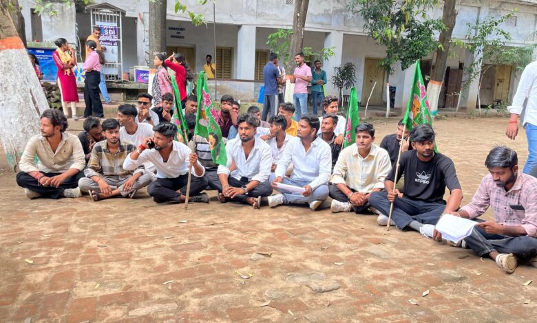 अभद्र व्यवहार करने व कमरे से धक्का देकर बाहर निकालने का आरोप लगाकर कॉलेज परिसर में धरना प्रदर्शन।