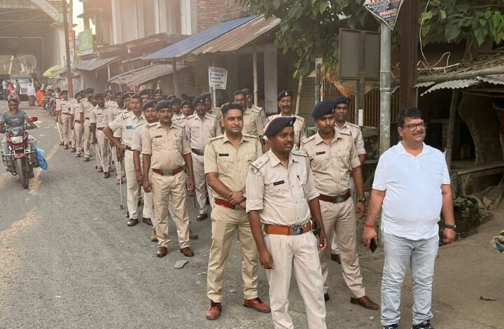 साहेबगंज – आगामी दुर्गापूजा पर्व को शांति और सौहार्दपूर्ण वातावरण में संपन्न कराने के लिए साहेबगंज जिला प्रशासन और पुलिस सतर्क हो गई है। इसी कड़ी में रविवार को राधानगर थाना पुलिस प्रशासन ने फ्लैग मार्च निकालकर लोगों से भाईचारे और आपसी सहयोग के साथ दुर्गापूजा मनाने की अपील की। मिली जानकारी के अनुसार, यह फ्लैग मार्च उधवा प्रखंड विकास पदाधिकारी सह अंचल अधिकारी (सीओ) जयंत कुमार तिवारी के नेतृत्व में निकाला गया। इस दौरान थाना क्षेत्र के विभिन्न इलाकों में पुलिस बल ने गश्ती की और लोगों को आश्वस्त किया कि प्रशासन सुरक्षा व्यवस्था को लेकर पूरी तरह से सजग और प्रतिबद्ध है। फ्लैग मार्च के दौरान अधिकारियों ने स्थानीय लोगों से अपील की कि वे अफवाहों से बचें और किसी भी तरह की संदिग्ध गतिविधि की जानकारी तुरंत पुलिस को दें। साथ ही, दुर्गापूजा जैसे धार्मिक पर्व को शांति और सौहार्दपूर्ण माहौल में मनाने का निर्णय लिया।