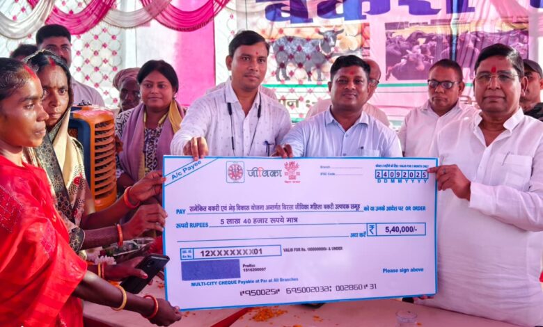 कार्यक्रम के मुख्य अतिथि झाझा विधायक दामोदर रावत थे। ग्रामीणों और जीविका दीदियों ने उनका गर्मजोशी से स्वागत किया और बुके भेंट कर सम्मानित किया। इस अवसर पर विधायक श्री रावत ने भीम, जागृति और बिरसा जीविका महिला बकरी उत्पादक समूह को 5 लाख 40 हजार रुपये का डमी चेक प्रदान किया।