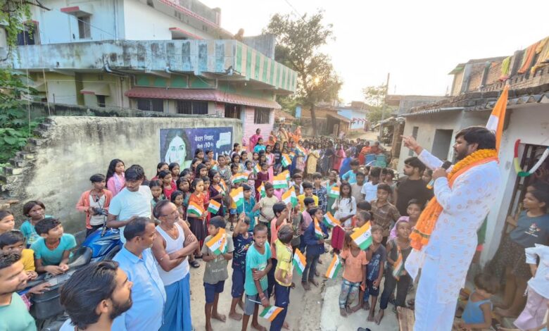 जमुई – नेचर विलेज के संस्थापक निर्भय प्रताप सिंह के नेतृत्व मे शहरों से शुरु हुई राष्ट्र गुणगान यात्रा अब गांव गांव मे पहुंचने लगी है। इसको लेकर अब ग्रामीण क्षेत्रों के लोगों मे भी काफी उत्सुकता देखी जा रही है।गांव-गांव के युवाओं के साथ साथ महिलाएं और बच्चे भी राष्ट्र गुणगान यात्रा का इंतजार करते देखे जा रहे हैं।लिहाजा जिन जिन गांवों से यात्रा गुजर रही है। उन गांवों मे लोगों खासकर