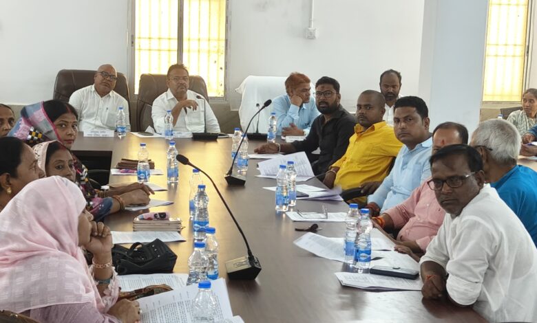 किया। बैठक में सरकारी अस्पताल में 24 घन्टा डॉक्टर की उपस्थिति नही रहने पर भी बबाल काटा गया। बैठक को लेकर मुख्य पार्षद ने कहा कि वार्ड संख्या 5 में सामुदायिक भवन पर आंगनबाड़ी का कब्जा है जिसे हटाया जाएगा। इसके अलावे अन्य जगहों पर अतिक्रमण है उसे भी हटाया जाएगा। उन्होंने बताया कि संत जोसेफ स्कूल तक नप क्षेत्र की जर्जर सड़क को लेकर वन विभाग से भी एनओसी मांगा गया लेकिन वह विभाग इस दिशा में ठोस कदम नही उठा रहे है इसके लिए प्रवेश पोर्टल पर रिक्वेस्ट डाला गया। ताकि एनओसी की अनुमति मिलने पर सुगम मार्ग बनाया जाए। इसके अलावे नगर क्षेत्र में