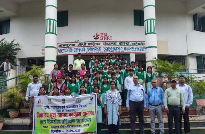 बोरियो/संवाददाता – सोमवार 15 सितंबर स्कूल स्वॉल हेल्थ प्रोग्राम के अंतर्गत (पी एम श्री कस्तूरबा गांधी बालिका विद्यालय)बोरियो, साहिबगंज में एक दिवसीय प्रशिक्षण कार्यक्रम का सफल आयोजन किया गया। इस कार्यक्रम में कृषि विज्ञान केन्द्र के वैज्ञानिक, उप परियोजना निदेशक आत्मा, नोडल स्वॉल हेल्थ कार्ड, बीटीएम बोरियो, विद्यालय के शिक्षकगण एवं छात्र-छात्राओं ने सक्रिय रूप से भाग लिया।कार्यक्रम के दौरान विशेषज्ञों द्वारा मृदा स्वास्थ्य प्रबंधन, संतुलित उर्वरक प्रयोग, जैविक खेती के महत्व तथा पर्यावरण संरक्षण पर विस्तार से जानकारी दी गई। उपस्थित विद्यार्थियों को यह बताया गया कि किस प्रकार स्वस्थ मृदा से बेहतर उत्पादन प्राप्त किया जा सकता है तथा किसानों की आय वृद्धि में यह कार्यक्रम सहायक सिद्ध होगा।