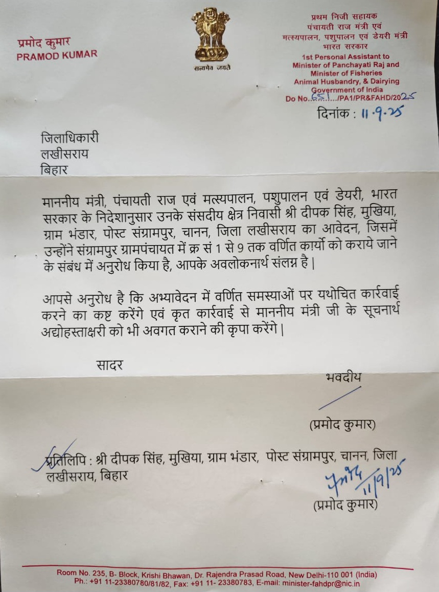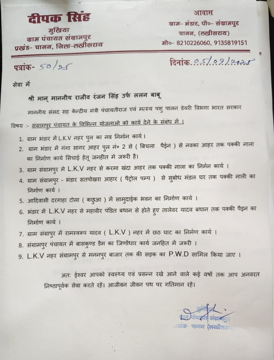 संग्रामपुर पंचायत में विकास की नई रूपरेखा, मुखिया की पहल को मिली केंद्रीय मंत्री ललन सिंह के द्वारा स्वीकृति।