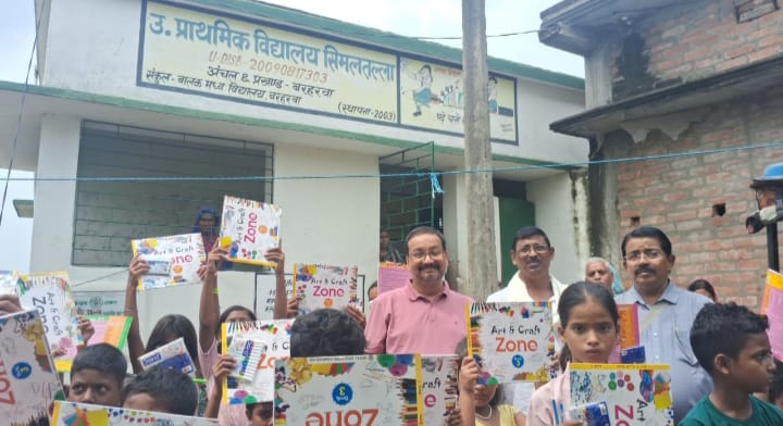 समाजसेवी सुमन कुमार ने किया सिमलतल्ला विद्यालय के बच्चों में पाठ्य सामग्रियों का वितरण।