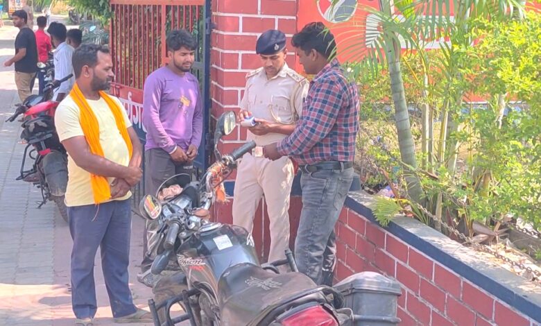 चुनाव को लेकर जिले में वाहन जांच अभियान तेज, बिना हेलमेट वालों पर कार्रवाई।