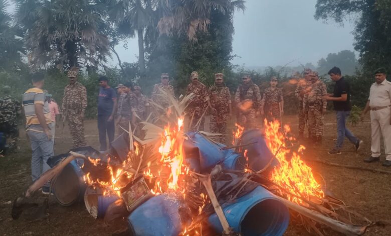 गुप्त सूचना पर चानन पुलिस की बड़ी कार्रवाई, कछुआ जंगल से 3000 लीटर जावा महुआ नष्ट।