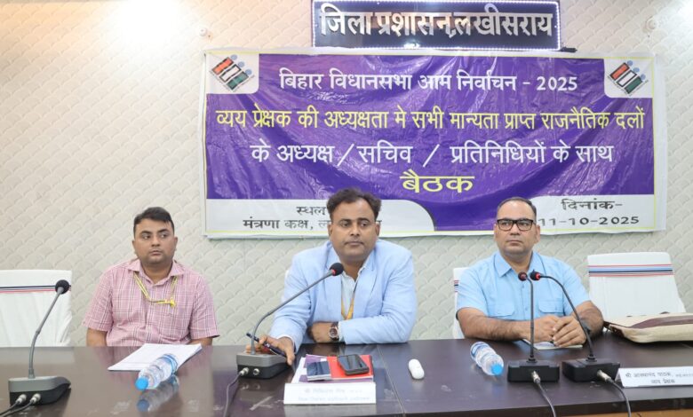 जिला पदाधिकारी ने संबंधित अधिकारियों को निर्वाचन संबंधी कार्यों को समयबद्ध और पारदर्शी ढंग से पूरा करने का निर्देश दिया। उन्होंने कहा कि किसी भी प्रकार की लापरवाही या देरी चुनाव प्रक्रिया को प्रभावित कर सकती है, इसलिए प्रत्येक विभाग अपनी जिम्मेदारी को गंभीरता से निभाए। बैठक में उपस्थित प्रमुख पदाधिकारियों में —श्रीमती विभा कुमारी, जिला उत्पाद अधीक्षक, नीरज कुमार, निदेशक, मनोज कुमार, नोडल पदाधिकारी (व्यय एवं लेखा अनुश्रवण), अविनाश कुमार अभिनव, शाखा प्रबंधक, ग्रामीण बैंक, सुमित कुमार, वन विभाग पदाधिकारी, कुणाल कुमार, कार्यपालक अभियंता, दीपक कुमार, पोस्ट मास्टर, लखीसराय डाकघर, मधुसूदन पासवान, उप निरीक्षक, रेलवे थाना किऊल, उमेश चौधरी, रेल पुलिस अधीक्षक, जमालपुर, राहुल कुमार, शाखा प्रबंधक, बंधन बैंक लखीसराय, राहुल रावत, ट्रेड मैनेजर, यूनियन बैंक ऑफ इंडिया, संजीत कुमार, माइनिंग ऑफिसर, लखीसराय, कुमार रंजन, जिला खनन पदाधिकारी सहित कई अन्य अधिकारी मौजूद रहे। बैठक को संबोधित करते हुए व्यय प्रेक्षक आस्थानंद पाठक ने कहा कि “स्वतंत्र और निष्पक्ष चुनाव कराना हमारी सर्वोच्च प्राथमिकता और जिम्मेदारी है। हमें यह सुनिश्चित करना है कि कोई भी मतदाता भ्रमित, प्रभावित या प्रलोभन में न आए। चुनाव आयोग की सभी गाइडलाइनों का कड़ाई से पालन किया जाए।” उन्होंने अधिकारियों से कहा कि यदि किसी स्तर पर कोई समस्या या अवरोध उत्पन्न हो, तो तुरंत वरीय पदाधिकारी को सूचित किया जाए और दिशा-निर्देश प्राप्त कर स्थिति का समाधान किया जाए। “हर विभाग की भूमिका अलग है, लेकिन लक्ष्य सबका एक है — निष्पक्ष और स्वच्छ चुनाव कराना,” उन्होंने यह भी जोड़ा कि सभी विभागों के बीच समन्वय और त्वरित संवाद ही सफलता की कुंजी है। बैठक में पुलिस अधीक्षक अजय कुमार, अपर समाहर्ता नीरज कुमार, अनुमंडल पदाधिकारी प्रभाकर कुमार, उप समाहर्ता शशि कुमार, जिला परिवहन पदाधिकारी मुकुल पंकज मणि, अनुमंडल पुलिस पदाधिकारी शिवम कुमार सहित अन्य प्रशासनिक व पुलिस अधिकारी उपस्थित थे। जिला निर्वाचन पदाधिकारी ने सुरक्षा व्यवस्था, निगरानी दलों की तैनाती, संवेदनशील क्षेत्रों की पहचान और मतदान केंद्रों की सुविधाओं की विस्तृत समीक्षा की। बैठक के अंत में जिला निर्वाचन पदाधिकारी मिथिलेश मिश्र ने कहा “लखीसराय जिला प्रशासन चुनाव आयोग के निर्देशों के अनुरूप पूरी तत्परता से कार्य करेगा। हमारा लक्ष्य है कि जिले में शांतिपूर्ण, निष्पक्ष और भयमुक्त मतदान संपन्न कराया जाए।” उन्होंने सभी अधिकारियों से अपील की कि वे समन्वय, पारदर्शिता और सतर्कता के साथ अपने दायित्वों का निर्वहन करें ताकि निर्वाचन प्रक्रिया लोकतंत्र के सर्वोच्च मानकों पर खरी उतर सके।