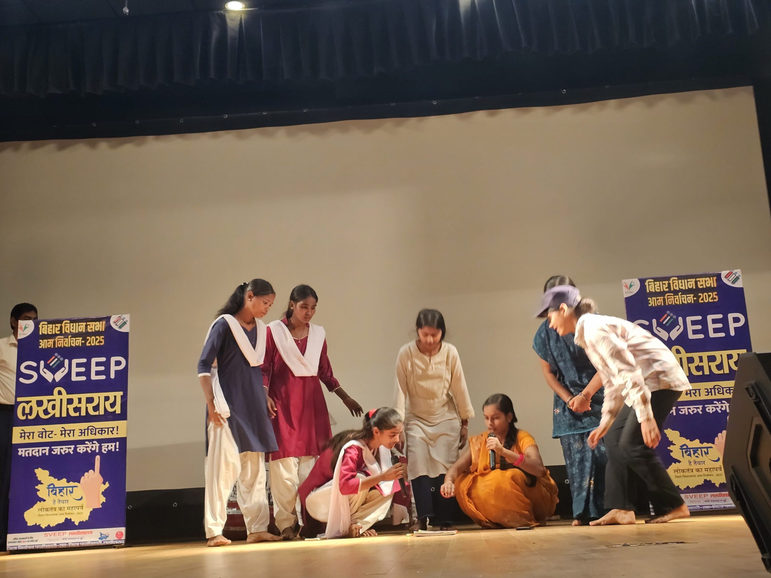 लखीसराय (सुजीत कुमार )- बिहार विधानसभा चुनाव 2025 को लेकर लखीसराय जिला में स्वीप (SVEEP) कोषांग के तहत मतदाता जागरूकता कार्यक्रम के अंतर्गत कैंपस एंबेसडर द्वारा चयनित छात्र-छात्राओं की नुक्कड़ नाटक प्रतियोगिता का आयोजन बालगुदर स्थित संग्रहालय प्रेक्षागृह में किया गया।