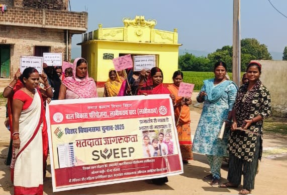 लखीसराय चानन – बाल विकास परियोजना की पदाधिकारी विभा कुमारी के दिशा-निर्देश पर केंद्र संख्या 252 में मतदाता जागरूकता रैली का आयोजन किया गया। इस अवसर पर महिला पर्यवेक्षिका सोनी की उपस्थिति में मंडल के टोला दुर्गा स्थान पर यह कार्यक्रम संपन्न हुआ। रैली में अपने पोषक क्षेत्र की सेविका क्रांति सिंह, सहायिका सुजाता कुमारी, आशा रिंकू देवी सहित