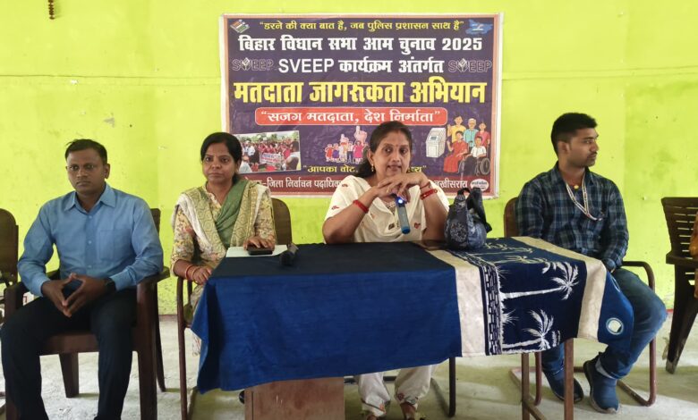 लखीसराय – बिहार विधानसभा चुनाव 2025 को लेकर जिला निर्वाचन पदाधिकारी सह जिला पदाधिकारी श्री मिथिलेश मिश्र के निर्देशानुसार व स्वीप कोषांग के नोडल पदाधिकारी सह जिला प्रोग्राम पदाधिकारी आईसीडीएस