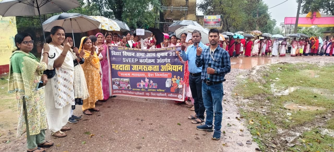 अभियान चला रही है। अंत में श्रीमती बंदना पांडेय के द्वारा सामूहिक रूप से मतदाता शपथ भी दिलाया गया। उसके बाद मतदाता जागरूकता रैली को स्वीप कोषांग के नोडल पदाधिकारी सह जिला प्रोग्राम पदाधिकारी आईसीडीएस श्रीमती बंदना पांडेय एवं बाल विकास परियोजना पदाधिकारी कुमारी मुक्ता ने संयुक्त रूप से हरी झंडी दिखाकर रवाना किए। बारिश होने की वजह से
