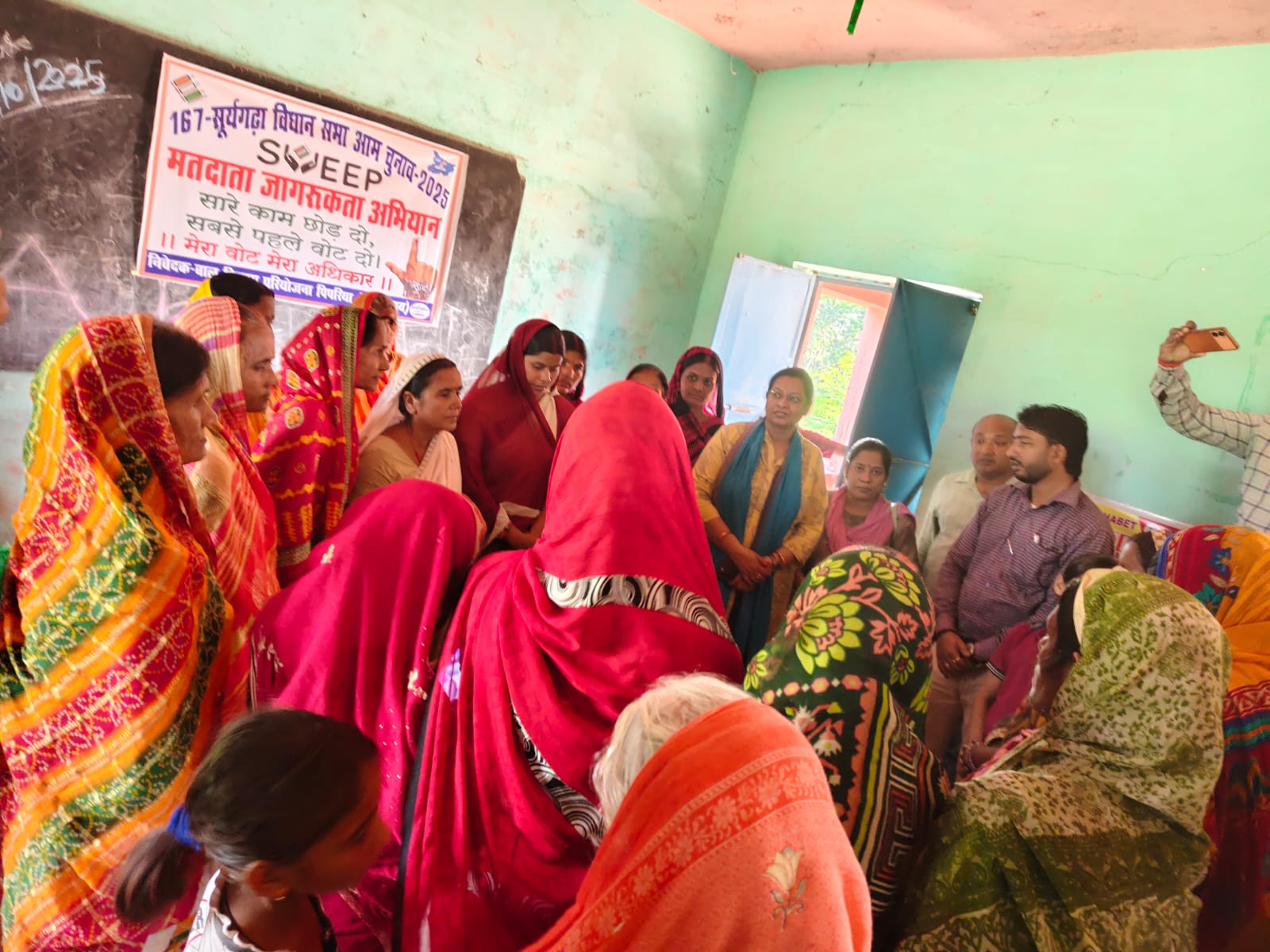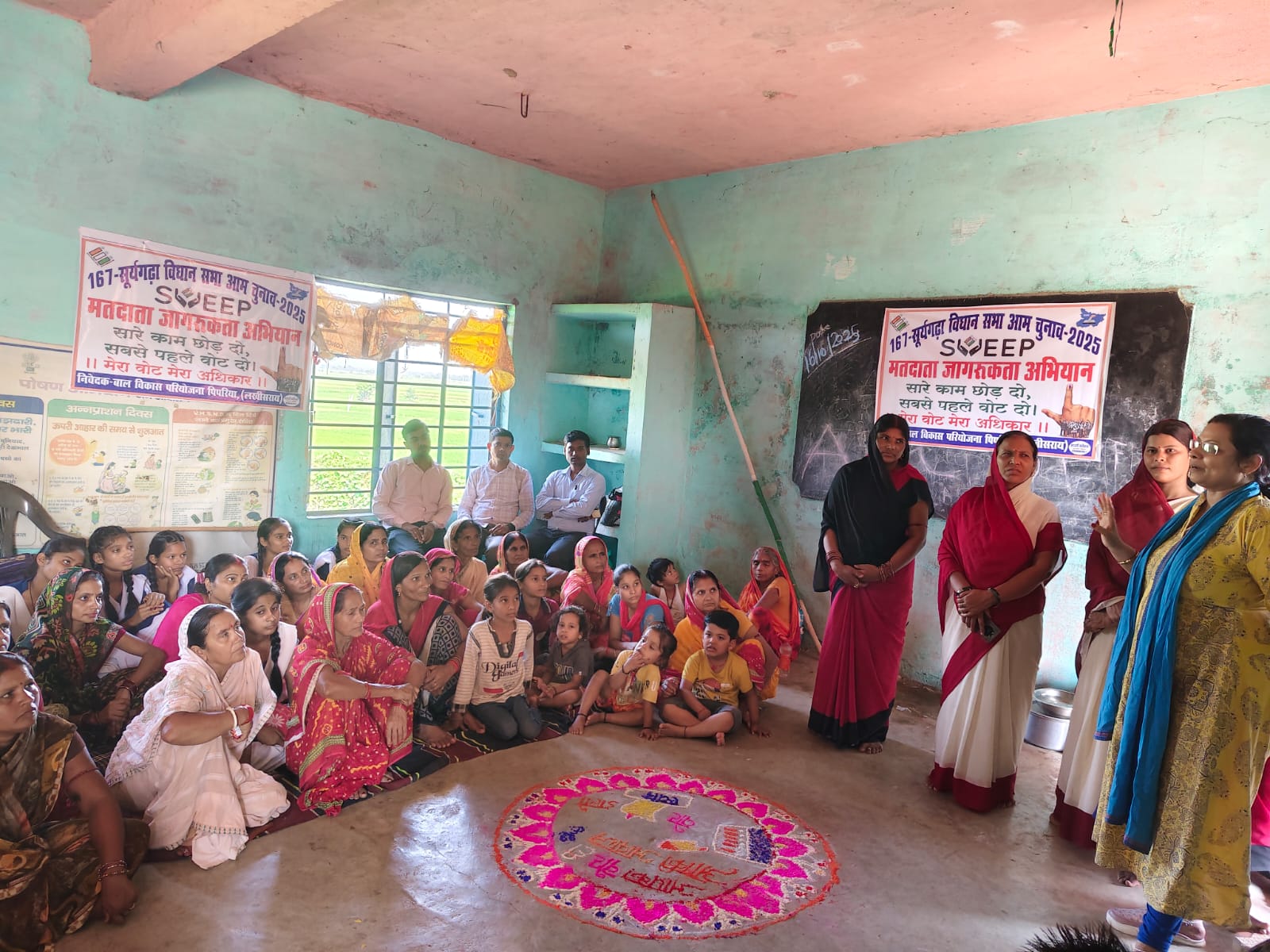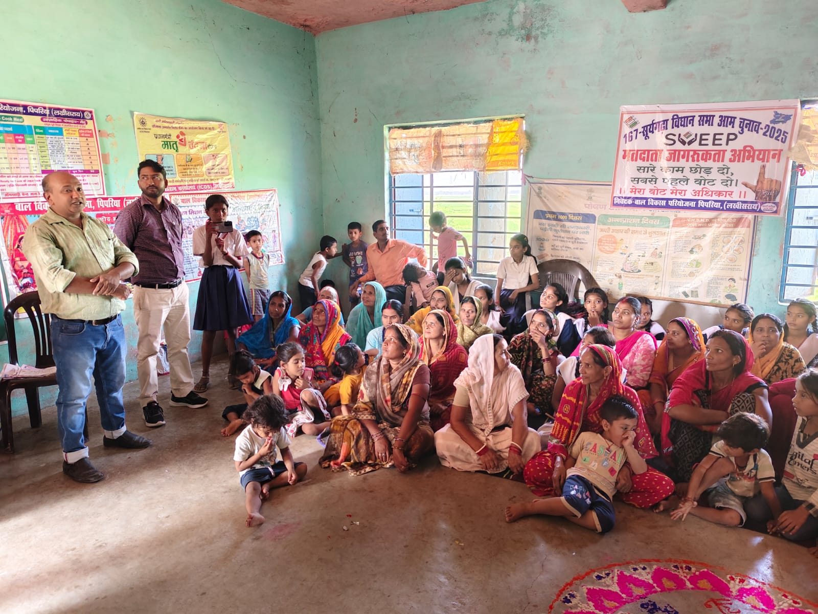लखीसराय (सूर्यगढ़ा)- आगामी बिहार विधानसभा निर्वाचन को लेकर सूर्यगढ़ा विधानसभा क्षेत्र संख्या 167 अन्तर्गत पिपरिया प्रखंड के बूथ संख्या 31, मध्य विद्यालय पबई में शुक्रवार को मतदाता जागरूकता