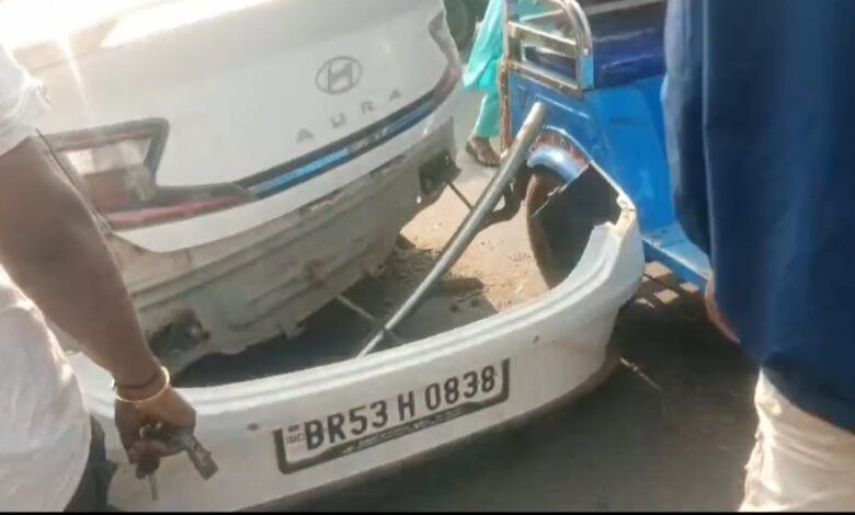 बाजार समिति में इंडिका और ई-रिक्शा की जोरदार टक्कर, बाल-बाल बचे यात्री।