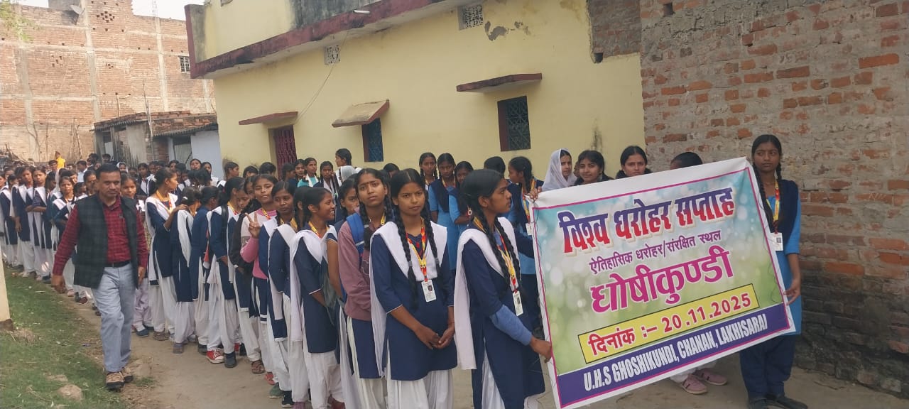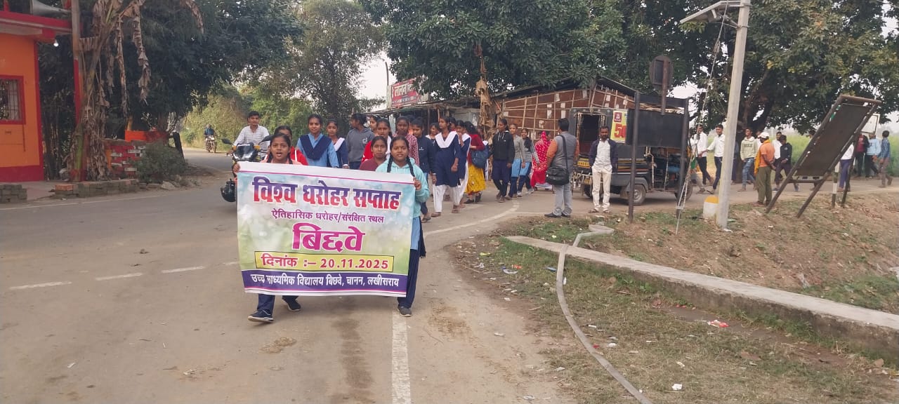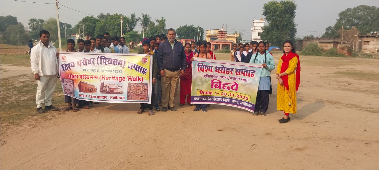 लखीसराय – विश्व धरोहर सप्ताह के तहत जिले के चानन प्रखंड अंतर्गत उत्क्रमित उच्च विद्यालय बिछवे और उत्क्रमित उच्च माध्यमिक विद्यालय घोषीकुंडी में गुरुवार को भव्य हेरिटेज वाक का आयोजन किया गया। इस