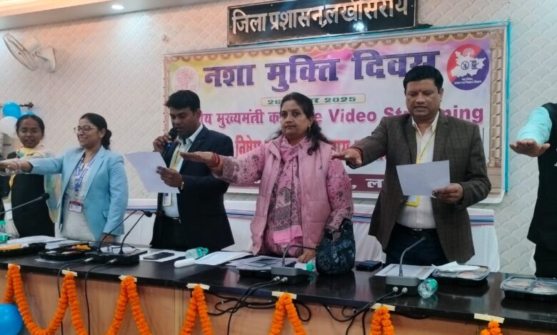 किया है। नशा मुक्ति दिवस एवं संविधान दिवस के अवसर पर समाहरणालय लखीसराय स्थित मंत्रणा कक्ष में अपर समाहर्ता श्री नीरज कुमार द्वारा संविधान की प्रस्तावना का वाचन एवं नशा मुक्ति शपथ दिलाई गई। उन्होंने कहा कि नशे से मुक्त होकर ही समाज, परिवार और व्यक्ति स्वस्थ एवं सशक्त बन सकते हैं। इस अवसर