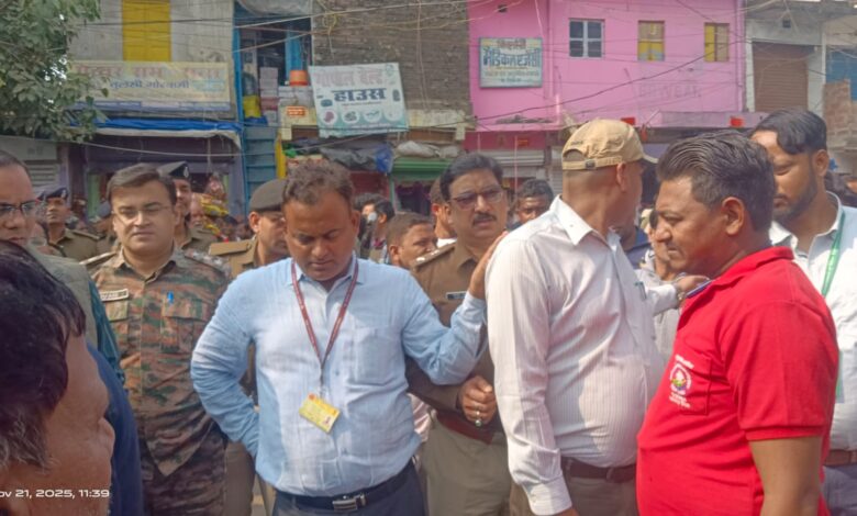 जिला पदाधिकारी और पुलिस अधीक्षक के नेतृत्व में लखीसराय शहर में अतिक्रमण विरोधी अभियान।