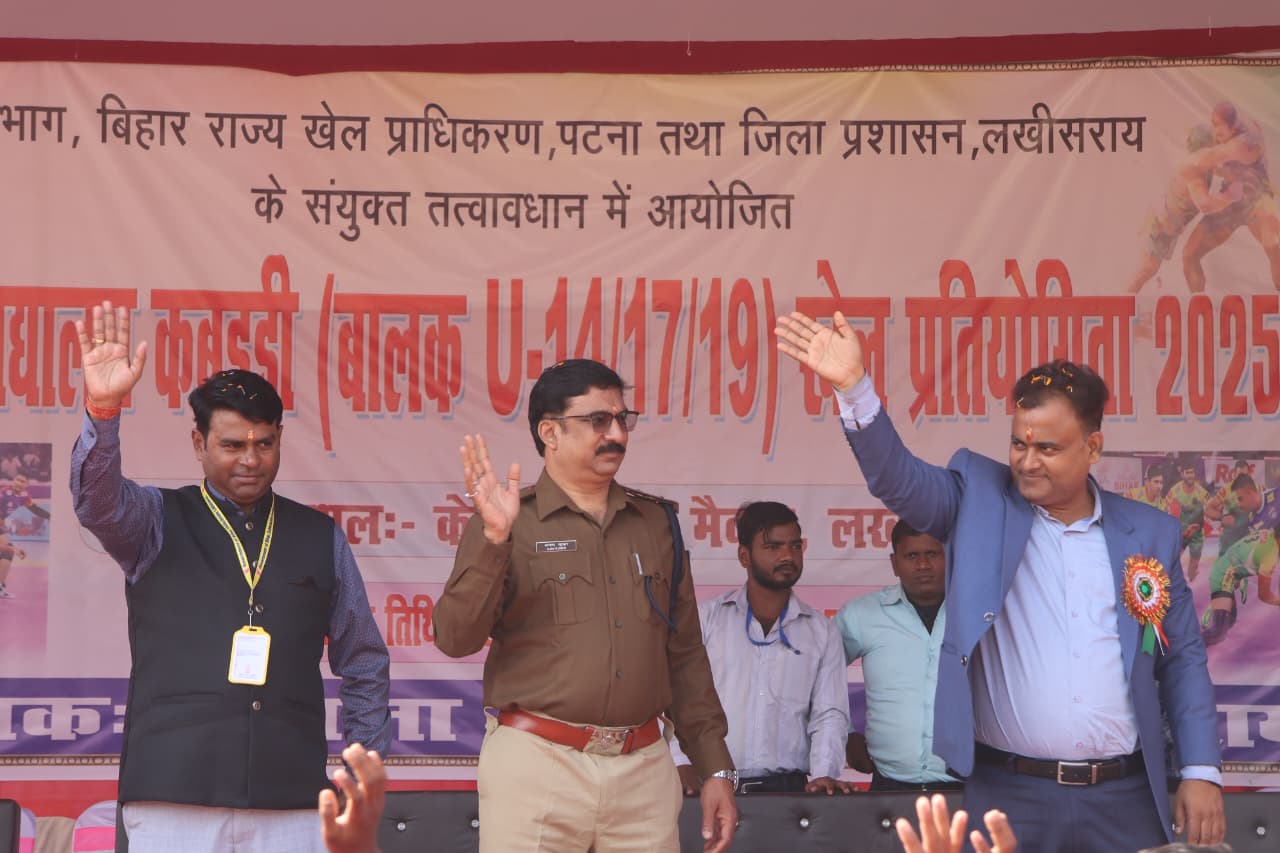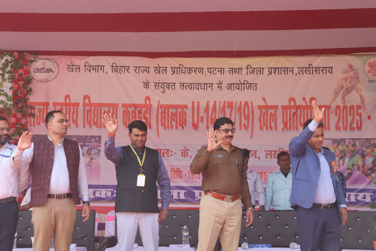 लखीसराय – बुधवार दिनांक 19.11.2025 से 21.11.2025 तक आयोजित राज्य स्तरीय कबड्डी प्रतियोगिता का शुभारंभ लखीसराय स्थित केoआरoकेo