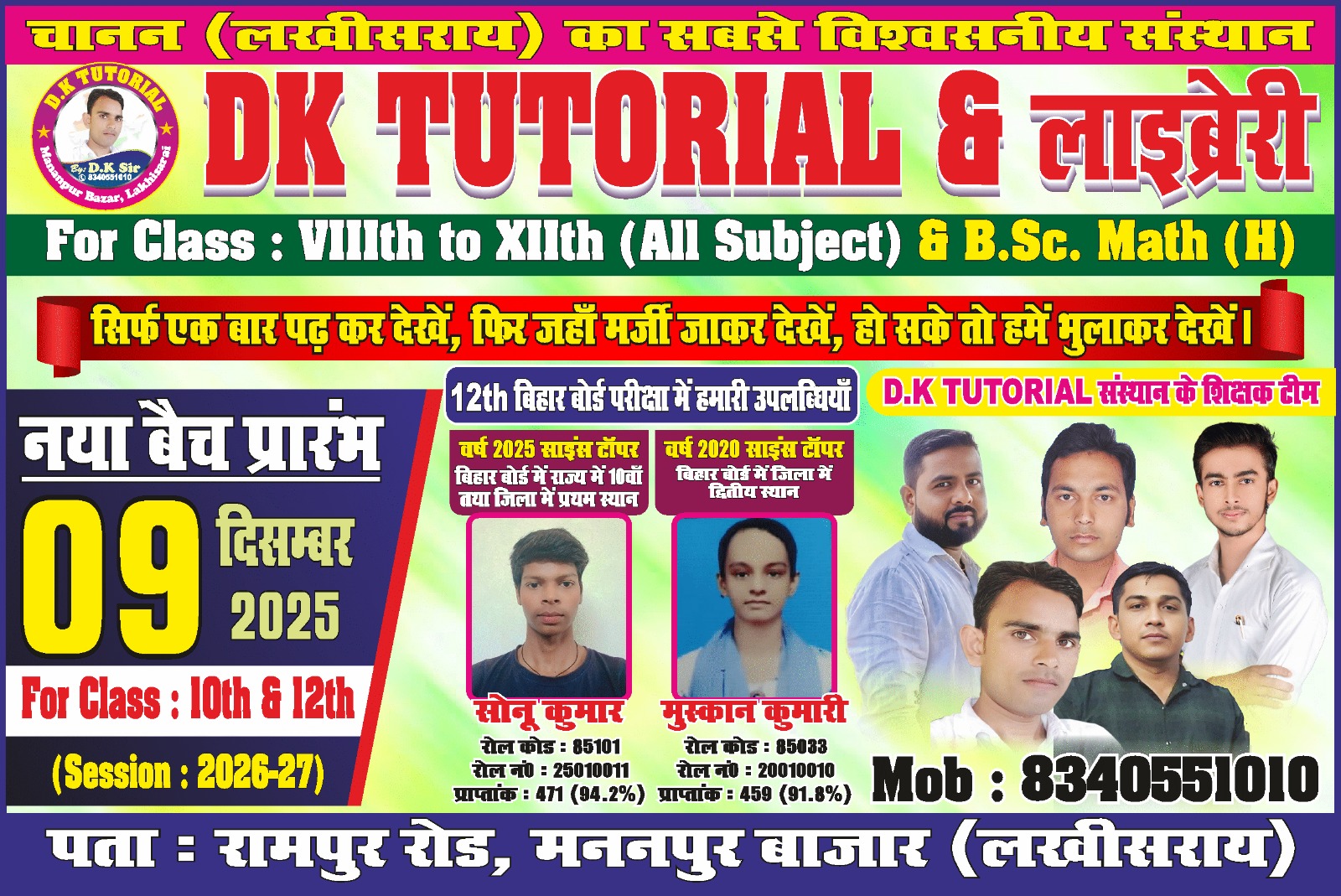 लखीसराय – बिहार विधानसभा आम निर्वाचन 2025 के अंतर्गत 167 सूर्यगढ़ा और 168 लखीसराय विधानसभा क्षेत्र के मतों की गणना आगामी 14 नवंबर को सुबह 8 बजे से प्रारंभ होगी। यह मतगणना कार्य राजकीय पॉलिटेक्निक संस्थान, लखीसराय परिसर स्थित दो अलग-अलग भवनों में किया जाएगा और परिणाम घोषित होने तक निर्बाध रूप से जारी रहेगा।