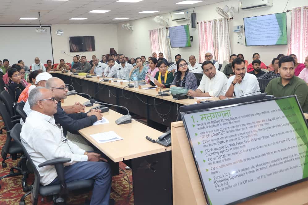 मतगणना दिवस पर स्ट्रांग रूम को केवल आयोग द्वारा अनुमोदित प्रक्रिया के तहत उम्मीदवार/उनके अधिकृत प्रतिनिधि / प्रेक्षक / RO /ARO की उपस्थिति में वीडियो ग्राफी के साथ खोला जाएगा। गणना के दौरान केवल Control Unit को ही गणना हॉल में अनुमति होगी। रिपोल हुए मतदान केन्द्रों पर वह Contol Unit ही प्रयोज्य होगी जिस पर “TO BE COUNTED” अंकित है। जिला निर्वाचन पदाधिकारी श्री मिथिलेश मिश्र ने प्रशिक्षण को संबोधित करते हुए कहा कि मतगणना लोकतंत्र का वह संवेदनशील अंतिम चरण है जहाँ zero compromise की नीति अनुसरण अनिवार्य है। उन्होंने निर्देश दिया कि प्रत्येक पदाधिकारी पारदर्शिता, प्रोटोकॉल अनुपालन और समयबद्ध कार्य निष्पादन सुनिश्चित करेगा। उन्होंने यह भी कहा कि मतगणना कार्य में किसी भी प्रकार की लापरवाही, असावधानी, गैर-प्रमाणिक क्रिया अथवा दिशानिर्देश उल्लंघन को शून्य सहिष्णुता की नीति के अंतर्गत लिया जाएगा। मतगणना दिवस हेतु सभी व्यवस्था, IT logistic, CCTV, बैरिकेडिंग, सुरक्षा, आवागमन रूट, PRC-RO-CU हैंडओवर प्रक्रिया तथा VVPAT Random Counting प्रोटोकॉल का भी पूर्व परीक्षण किया जा रहा है। इस प्रशिक्षण कार्यक्रम में अपर समाहर्ता श्री नीरज कुमार, उप विकास आयुक्त श्री सुमित कुमार, स्थापना उपसमाहर्ता श्री शशि कुमार, जिला शिक्षा पदाधिकारी श्री यदुवंश राम सहित अन्य पदाधिकारी उपस्थित रहे।