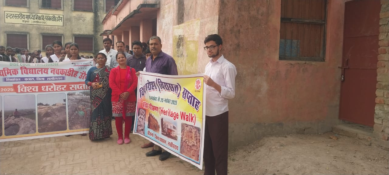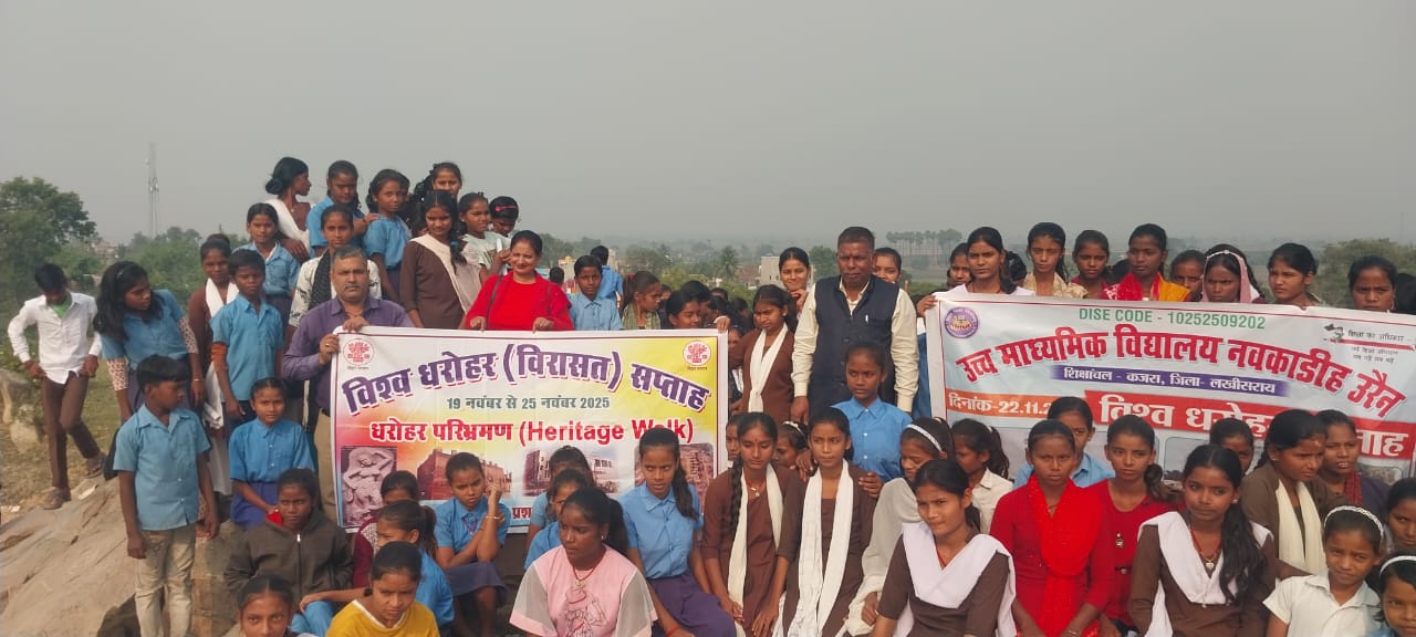 लखीसराय – विश्व धरोहर सप्ताह-2025 के अवसर पर आज दिनांक 22.11.2025 को सूर्यगढ़ा प्रखंड के कजरा शिक्षांचल अन्तर्गत उत्क्रमित उच्च विद्यालय नवकाडीह उरैन में धरोहर (विरासत) क्विज, पेंटिंग