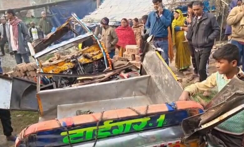 वैशाली में रफ्तार का कहर, बस-ऑटो की सीधी टक्कर में तीन की मौत, दर्जनभर घायल।