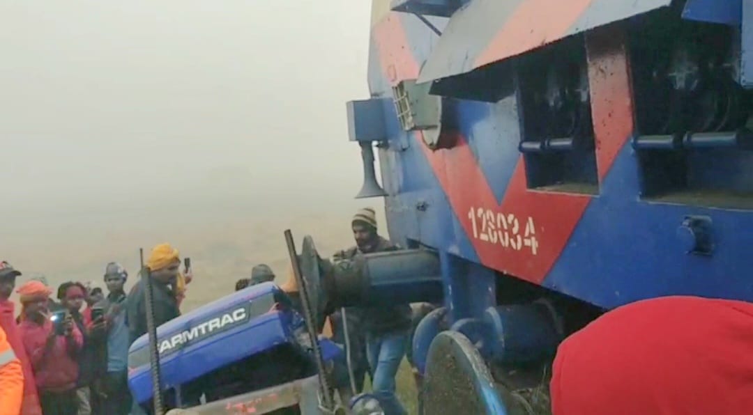 ट्रैक्टर से टकरा गई। टक्कर इतनी भीषण थी कि ट्रैक्टर ट्रेन के इंजन में फंस गया और करीब 500 मीटर तक घसीटता चला गया। हालांकि राहत की बात यह रही कि इस घटना में किसी यात्री या रेलवे कर्मी के हताहत होने