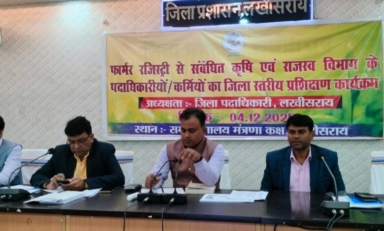 लखीसराय- गुरुवार 4 दिसंबर 2025 को समाहरणालय लखीसराय स्थित मंत्रणा कक्ष में जिला पदाधिकारी लखीसराय मिथिलेश मिश्र की अध्यक्षता में जिला स्तरीय कृषि टास्क फोर्स एवं चतुर्थ कृषि रोड मैप अंतर्गत कृषि विभाग तथा अन्य संबंधित विभागों की योजनाओं की समीक्षा बैठक आयोजित की गई। बैठक में कृषि विकास से जुड़े विभिन्न विभागों के समन्वय, प्रगति एवं चुनौतियों पर विस्तृत चर्चा की गई।इस बैठक में जिला उद्यान