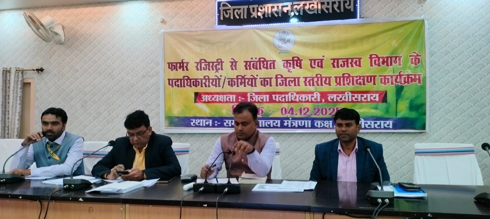 लखीसराय- गुरुवार 4 दिसंबर 2025 को समाहरणालय लखीसराय स्थित मंत्रणा कक्ष में जिला पदाधिकारी लखीसराय मिथिलेश मिश्र की अध्यक्षता में जिला स्तरीय कृषि टास्क फोर्स एवं चतुर्थ कृषि रोड मैप अंतर्गत कृषि विभाग तथा अन्य संबंधित विभागों की योजनाओं की समीक्षा बैठक आयोजित की गई। बैठक में कृषि विकास से जुड़े विभिन्न विभागों के समन्वय, प्रगति एवं चुनौतियों पर विस्तृत चर्चा की गई।इस बैठक में जिला उद्यान