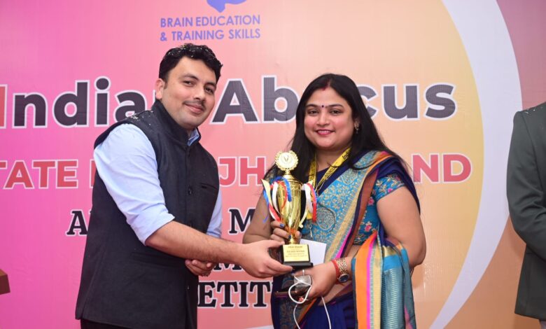 माध्यम से उनके संज्ञानात्मक विकास को प्रोत्साहित करना था। प्रतियोगिता में भाग लेने वाले सभी बच्चों को उनके उत्कृष्ट प्रदर्शन के लिए पदक एवं ट्रॉफी प्रदान कर सम्मानित किया गया। इस पूरे आयोजन की योजना अत्यंत सुव्यवस्थित ढंग से टीम इंडियन एबेकस झारखंड