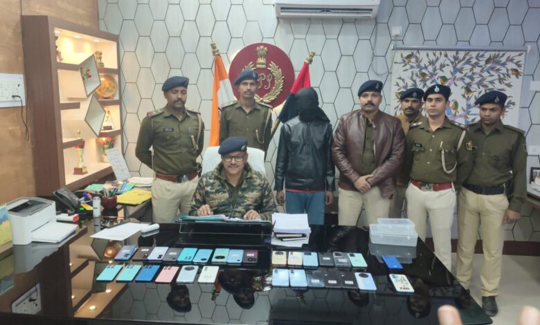 जमुई में मोबाइल चोर गिरोह का पर्दाफाश, 29 चोरी के मोबाइल बरामद- एक गिरफ्तार, दो नाबालिग निरुद्ध।