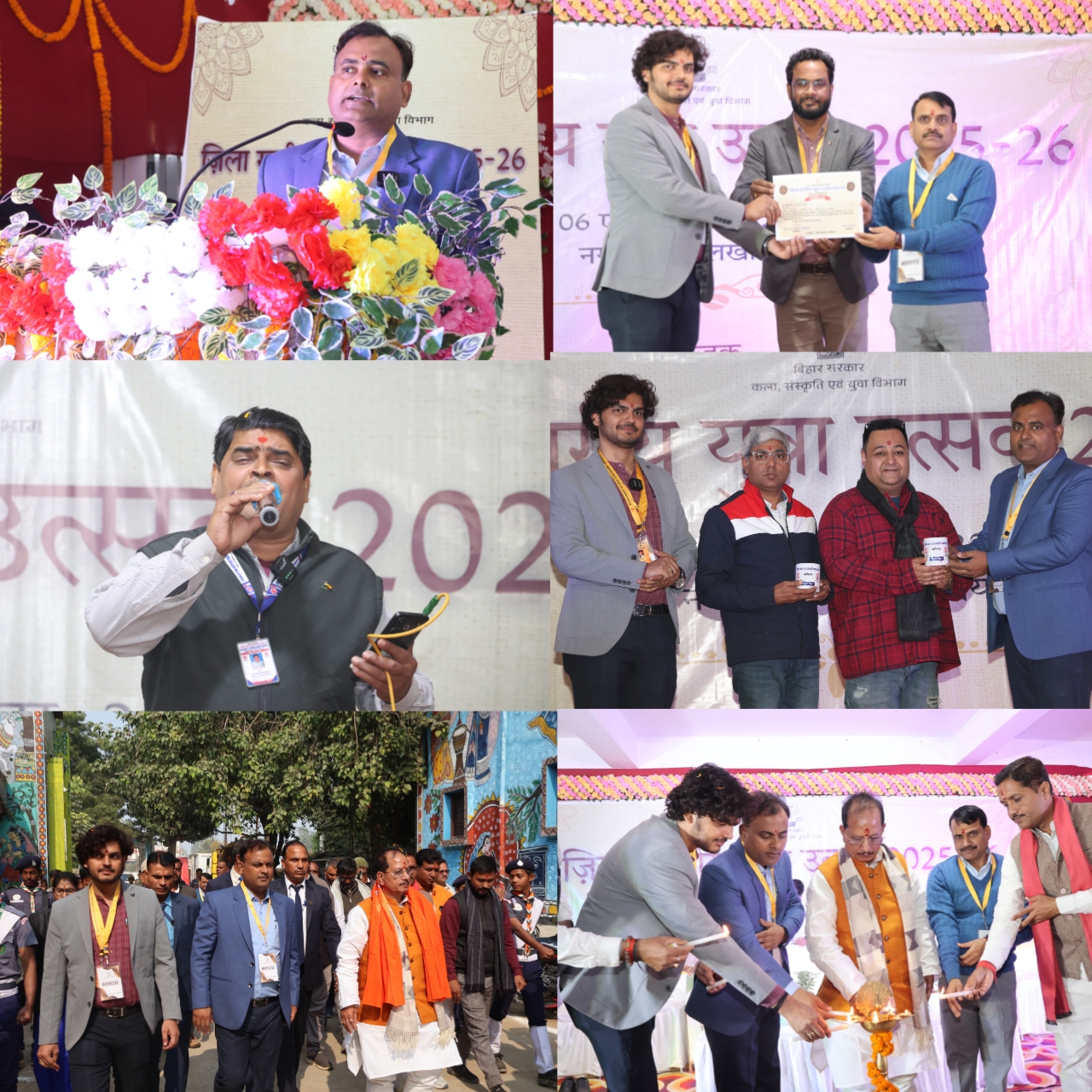 बिहार श्री विजय कुमार सिन्हा ने दीप प्रज्ज्वलित कर की। अपने संबोधन में उन्होंने कहा कि युवा महोत्सव युवाओं को अपनी मेधा और कला कौशल प्रदर्शित करने का एक सशक्त मंच प्रदान करता है तथा इस प्रकार के