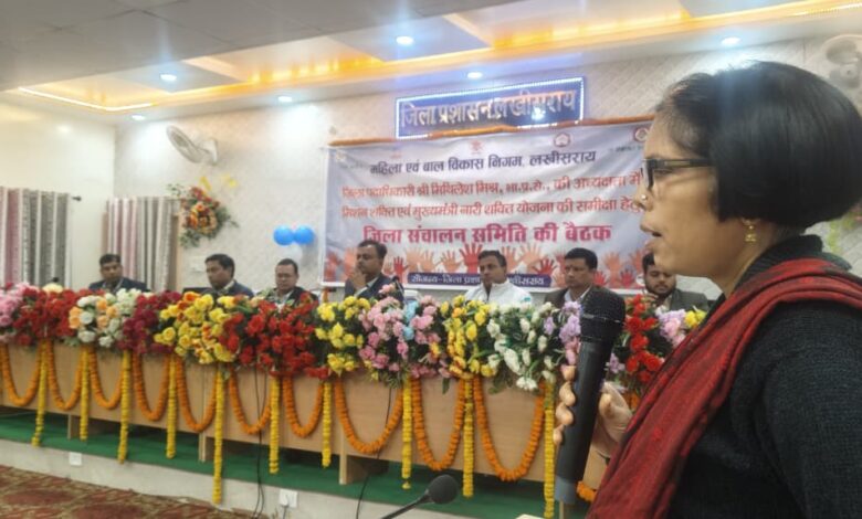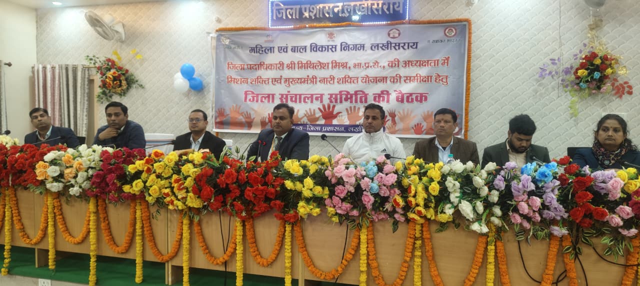 लखीसराय – जिला पदाधिकारी लखीसराय श्री मिथिलेश मिश्र की अध्यक्षता में मिशन शक्ति एवं मुख्यमंत्री नारी शक्ति योजना अंतर्गत संचालित सभी योजनाओं की प्रगति की समीक्षा हेतु जिला संचालन समिति की बैठक आयोजित की गई। बैठक में महिलाओं एवं बालिकाओं के सशक्तिकरण, संरक्षण एवं पुनर्वास से